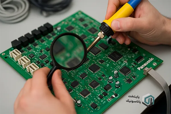 مینبورد مانند مغز سانترال عمل میکند. اگر مدار بوت یا آیسی تغذیه مینبورد آسیب ببیند، دستگاه دیگر روشن نمیشود یا بوت ناقص دارد. در این وضعیت، فن ممکن است بچرخد ولی هیچ چراغی به حالت پایدار نرسد. رفع این مشکل نیاز به تجهیزات تخصصی و دانش الکترونیک دارد و بهتر است توسط مرکز تعمیر سانترال پاناسونیک انجام شود.